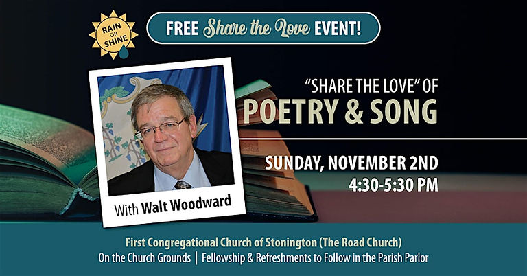 As part of our ongoing celebration of The Road Church’s founding, we invite you to a special evening of poetic reflection and musical storytelling with Connecticut State Historian Emeritus Walt Woodward.